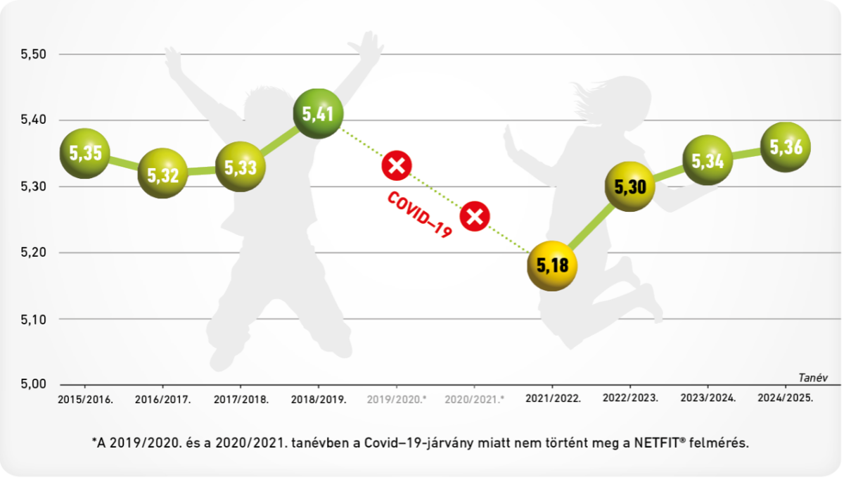 Az előző tanévi NETFIT® felmérések kiértékelését követően látható, hogy folyamatosan javul a diákok fittségi indexe, és az eredmények közelítik a COVID-járvány előtti szintet. Testtömegindex tekintetében a lányoknál sikerült megismételni az előző tanévi számokat, ami az elmúlt 10 év legjobb eredménye. Folyamatosan javul továbbá az iskolások állóképessége is, de még ez sem érte el a pandémia előtti értékeket. Az Aktív Iskolákban két tanév eredményei megerősítik, hogy jóval az átlag feletti a diákok fittségi állapotának javulása, amely egyértelműen mutatja a program hatásosságát.
